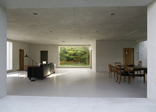 Les fenêtres, avec leurs menuiseries cachées, peuvent être abaissées à l’aide d’un moteur dans des vides situés au sous-sol, l’espace se transforme alors entièrement en pavillon de jardin. Ce n’est qu’après un examen plus attentif que le visiteur perçoit que ce qui paraît être une géométrie idéale est perturbée. L’escalier est situé dans une excroissance en saillie, la cuisine empiète en tant que volume indépendant sur l’espace intérieur. Le jury a été impressionné par la rigueur avec laquelle cette maison a été réalisée en recourant à un seul matériau – au béton apparent des murs, des plafonds et des sols s’ajoute uniquement du noyer destiné aux équipements intégrés également conçus par les architectes. A vrai dire, le visiteur ne perçoit la maison que comme une succession d’espaces intérieures – comme dans un parcours qui conduit à travers le couloir vers le bas, dans la lumière et l’espace généreux du séjour. Apparemment arrivé au centre du bâtiment, le visiteur peut s’imaginer se trouver dans un espace extérieur. La simplicité est complexe, la complexité paraît simple: la structure brute et des détails parfaitement étudiés s’associent étroitement.